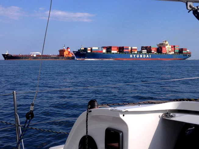 - Kept my head both inside the boat monitoring AIS targets and outside the boat to monitor potential traffic without AIS transponders, and remaining vigilant to keep clear of all traffic, including by sailing in the Separation Zone, not in the shipping channel.
